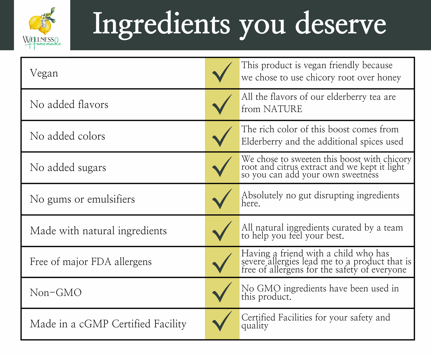 The information provided on this website, including product descriptions, blog posts, and any related content, is for informational and educational purposes only and is not intended as medical advice. Elderberry Boost is a dietary supplement and is not intended to diagnose, treat, cure, or prevent any disease.The statements regarding this product have not been evaluated by the Food and Drug Administration (FDA). If you are pregnant, nursing, taking medication, or have a medical condition, consult with a qualified healthcare provider before using this product. Individual results may vary.The content on this website should not be considered a substitute for professional medical advice, diagnosis, or treatment. Always seek the advice of your physician or other qualified health provider with any questions you may have regarding a medical condition. Never disregard professional medical advice or delay seeking it because of something you have read on this site.By using this site and purchasing Elderberry Boost, you acknowledge and agree that you are responsible for your own health decisions and that the company assumes no liability for any direct or indirect consequences resulting from the use or misuse of this product.